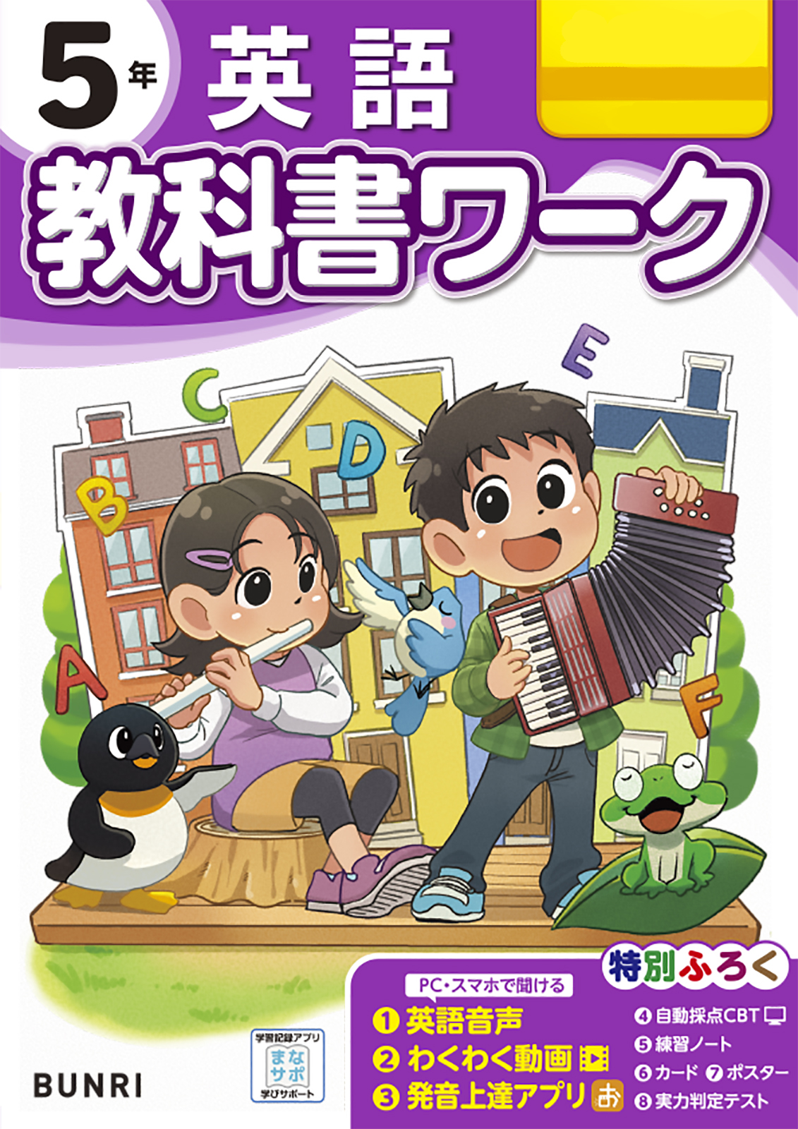 場面ごとの重要表現を、キャラたちといっしょにリズムに乗せて楽しく発話練習します。