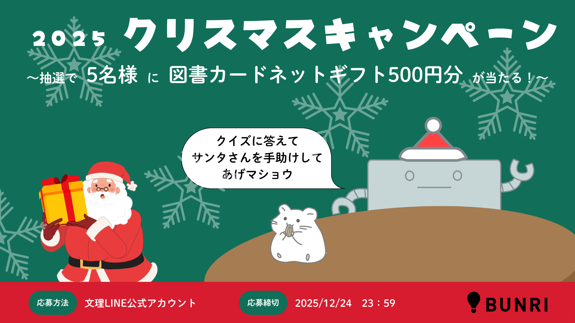 7問の3択クイズに答えてサンタさんのお手伝いをしてくれた方の中から、抽選で5名様に、500円分の図書カードネットギフトをプレゼント!