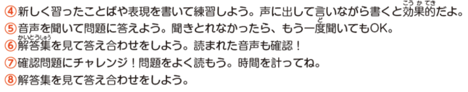 語句や表現をしっかり身につけるためのステップがあります。