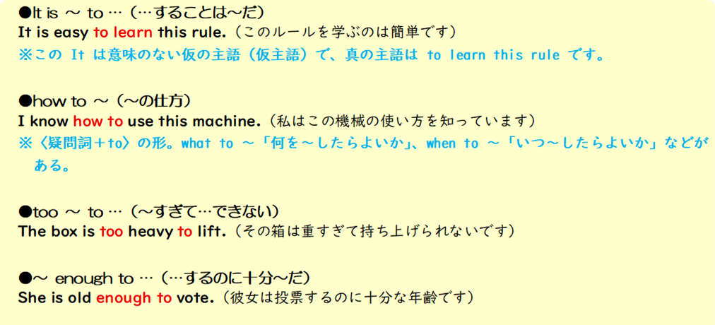 以下の不定詞を使った表現は定期テストでもよく出題されます。