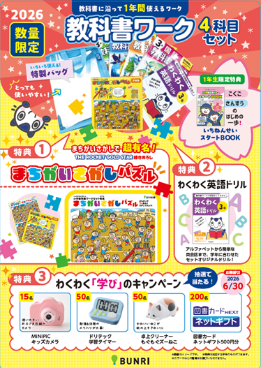 下記は2026年度版小学教科書ワーク4科セットの特典です。