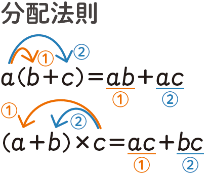 展開:かけ算を計算して、たし算・ひき算の形になおすこと