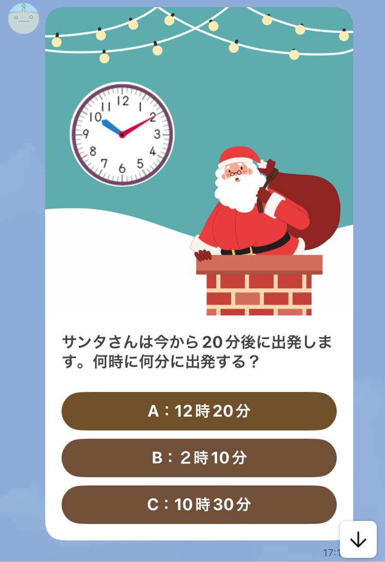 そんなサンタさんのお仕事を、文理LINE公式アカウントで出題する7問の3択クイズに答えて手助けしてあげましょう。