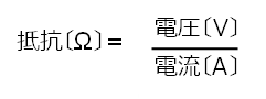 この抵抗は、数値で表すことができます。抵抗は、電圧〔V〕電流〔A〕で割った値で、単位はオーム〔Ω〕です。