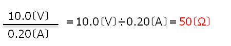 抵抗器A:10.0Vの電圧を加えると0.20Aの電流が流れるので、