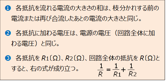 並列回路では、次ののことがらが成り立ちます。