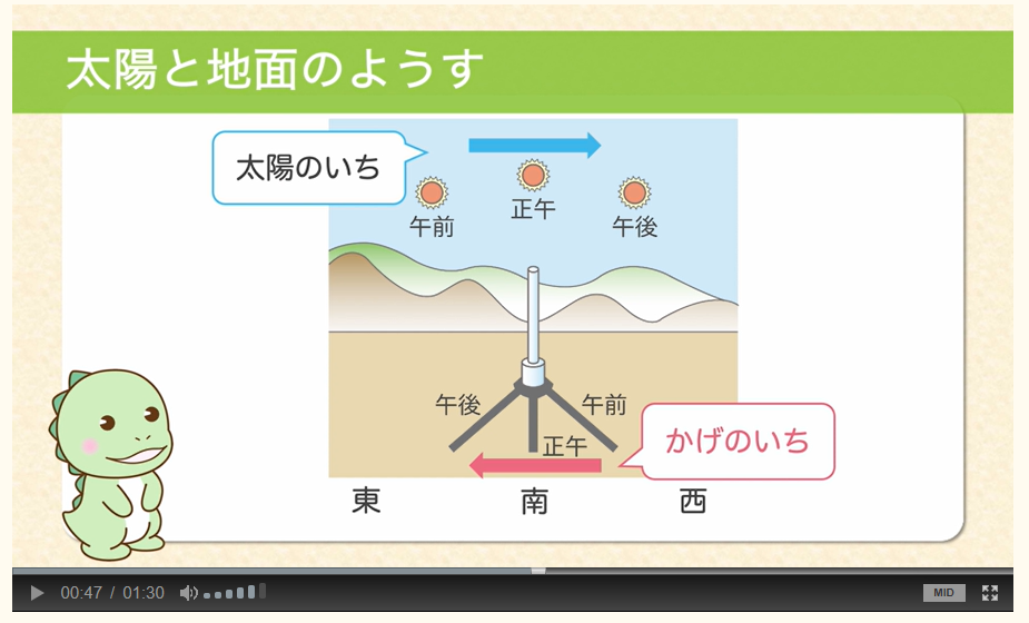 小3の理科では、太陽の動きと影の向き・長さを観察します。