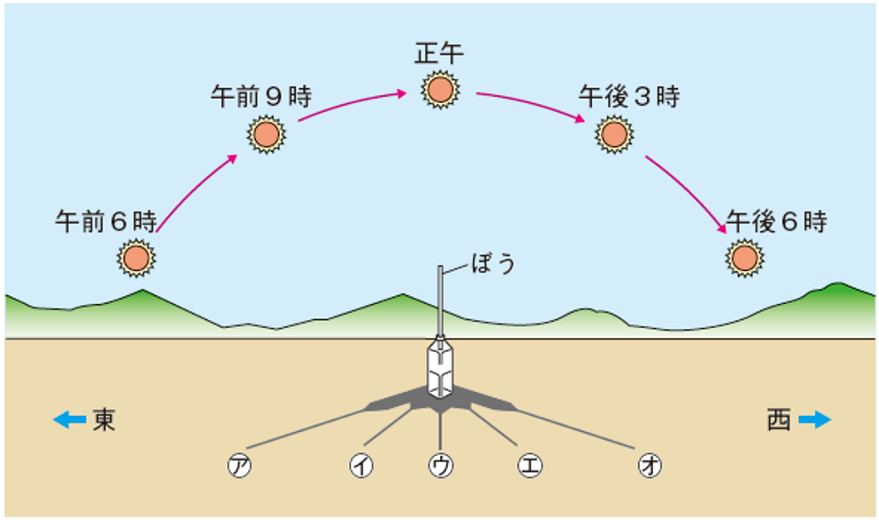 地面に棒を立て、太陽と影の位置で時刻を読み取っていました。