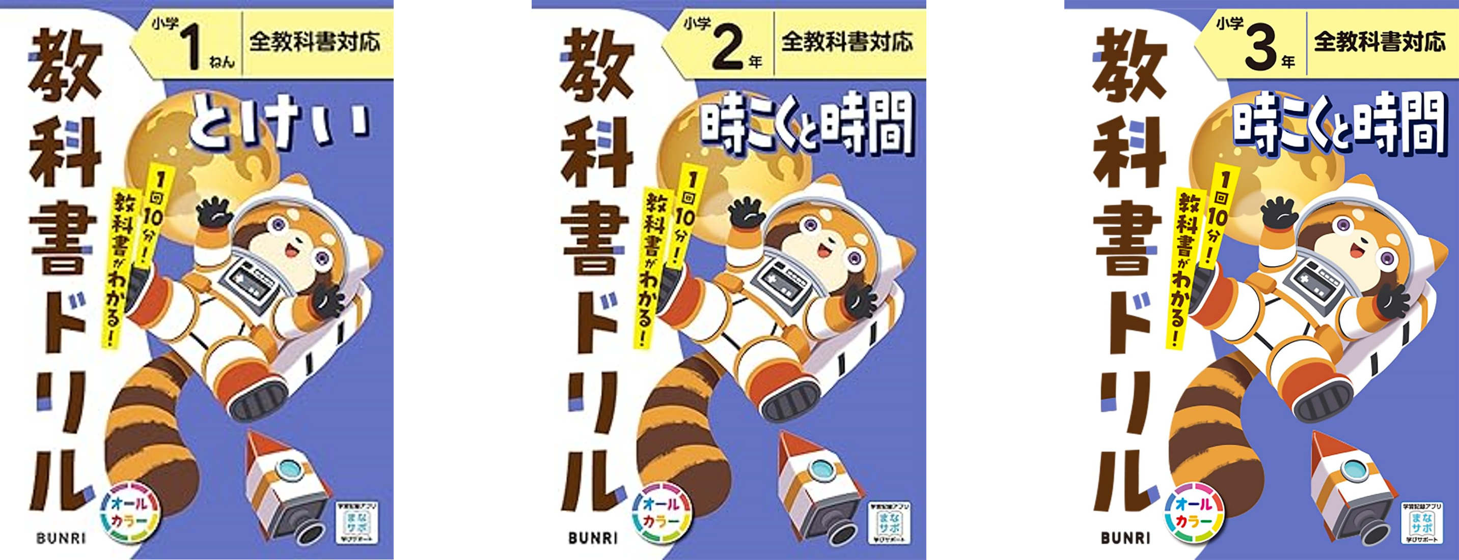 1年:とけい/2年:時こくと時間/3年:時こくと時間